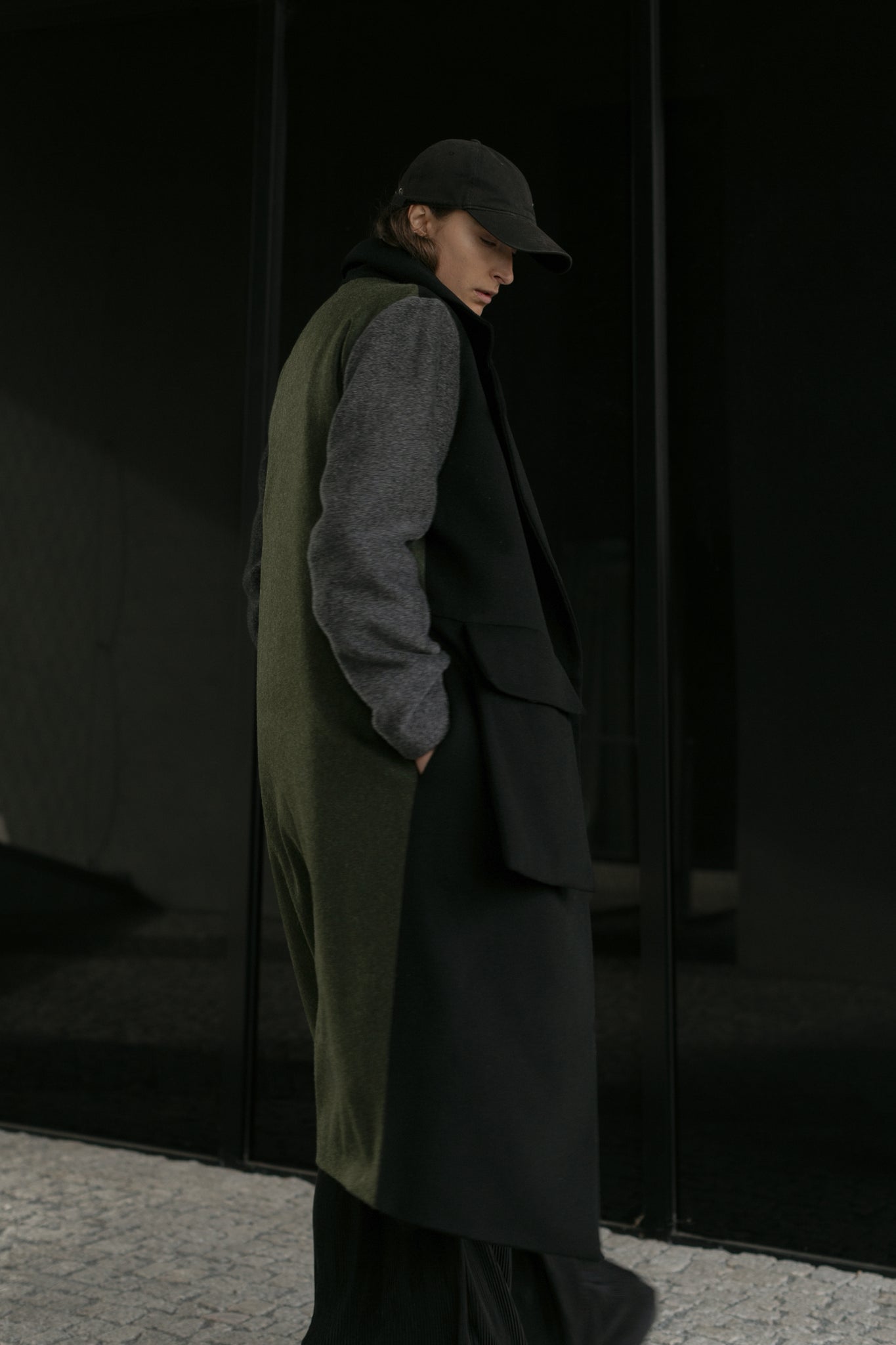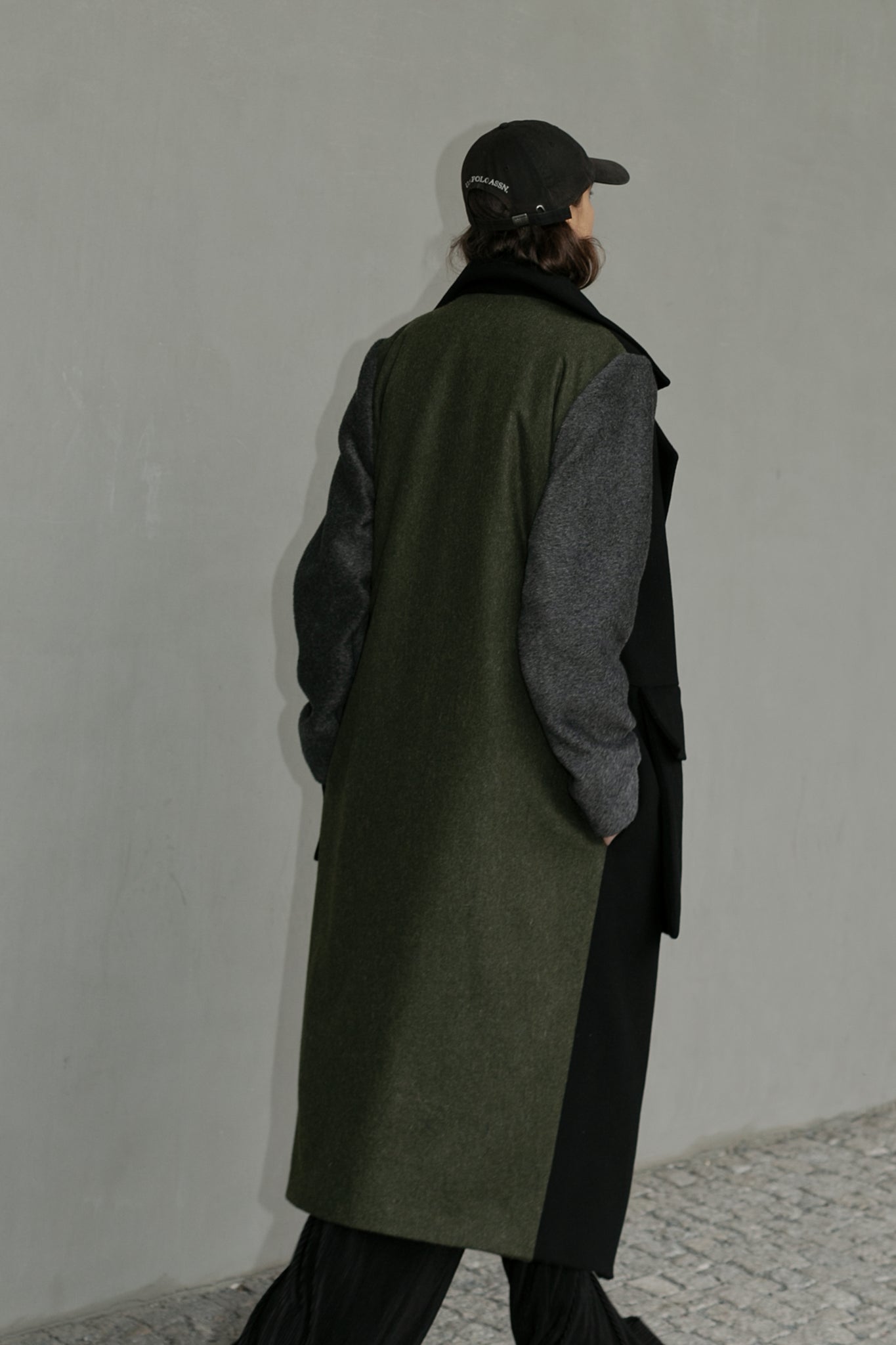 Oversize long coat, two large pockets in the front.